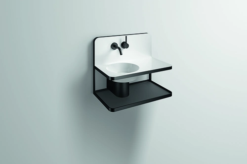 Alape Steel 19 Waschplatz WP.S19.1, B:600mm, H:497mm, T:360mm, Mulde rund links, ohne Überlauf, mit Glasablage