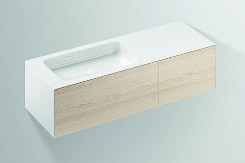 Alape WP.Folio8 Waschplatz, 1254x350x450mm, Waschtischunterschrank 2 Vollauszüge, Waschtisch ohne Hahnloch