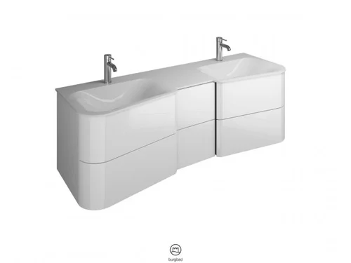 burgbad Badu Mineralguss-Doppelwaschtisch weiß brilliant, inklusive Waschtischunterschrank, 4 Auszüge, 2 Schubladen, Breite 1520mm