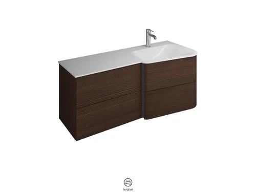 burgbad Badu Mineralguss-Waschtisch weiß velvet, inklusive Waschtischunterschrank, 2 Auszüge, 2 Schubladen, Version rechts, Breite 1220mm