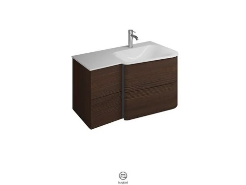 burgbad Badu Mineralguss-Waschtisch, weiß velvet, inklusive Waschtischunterschrank, mit 2 Schubladen, Breite 92cm, Ausführung rechts