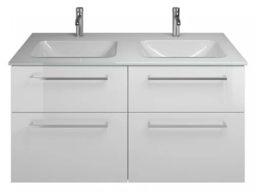 burgbad Eqio Glas-Doppelwaschtisch inklusive Waschtischunterschrank, Breite 1220mm