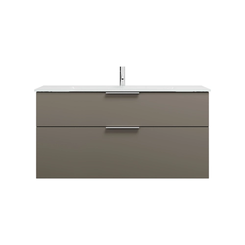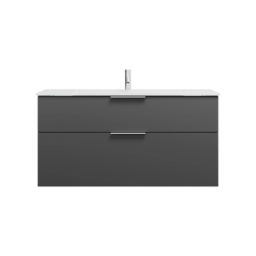 - Acrylfront Hochglanz mit Laserkante / Korpusaussenseiten Melamin Glänzend: Weiß Hochglanz, Grau Hochglanz (Böden/Rückwand: Anthrazitgrau)