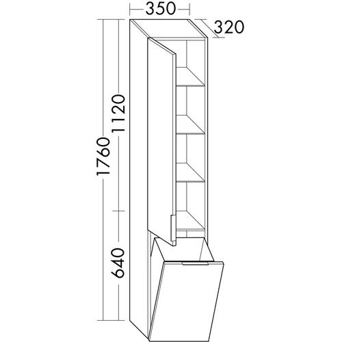 burgbad Eqio Hochschrank 1-türig, 1 Wäschekippe, Türanschlag links, 1760x350x320mm