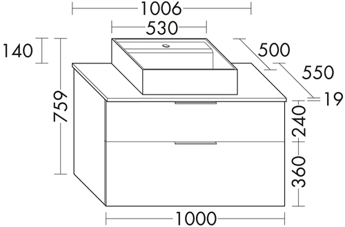 - 1 x Keramik-Aufsatzwaschtisch inklusive Waschtischunterschrank