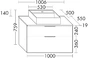 - 1 Schublade oben, 350 mm tief, mit Siphonausschnitt und Inneneinteilung
