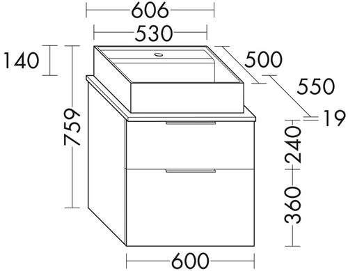 - 1 x Keramik-Aufsatzwaschtisch inklusive Waschtischunterschrank