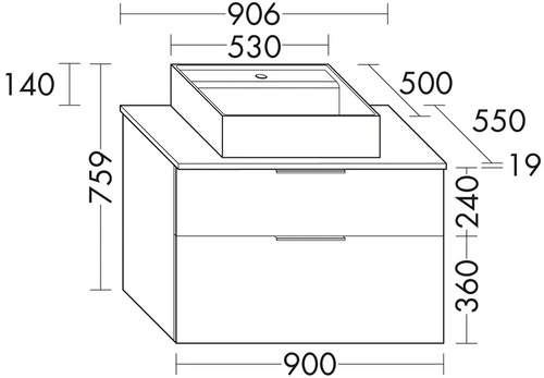 - BxTxH: 906x550x600 mm