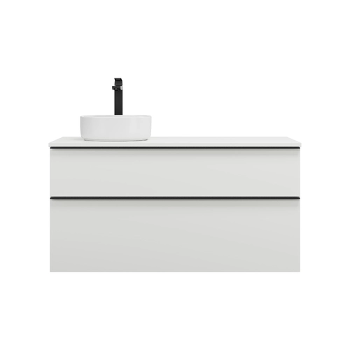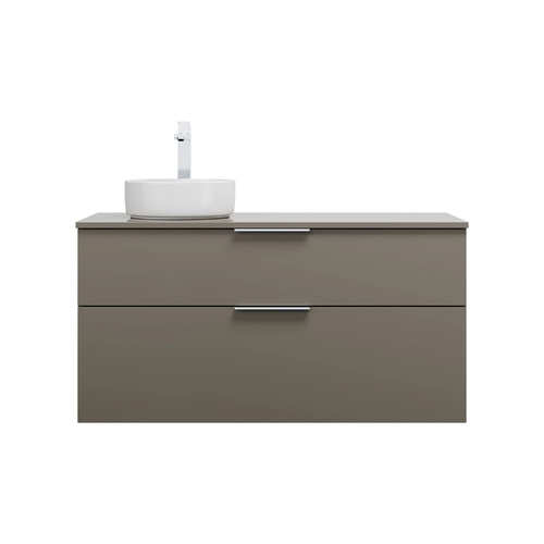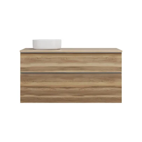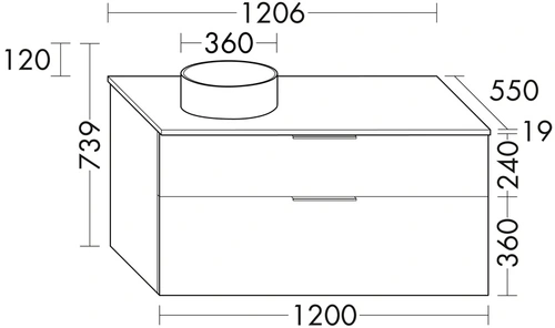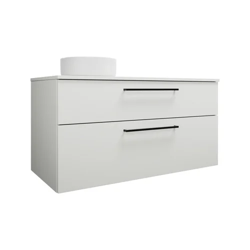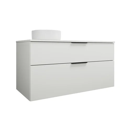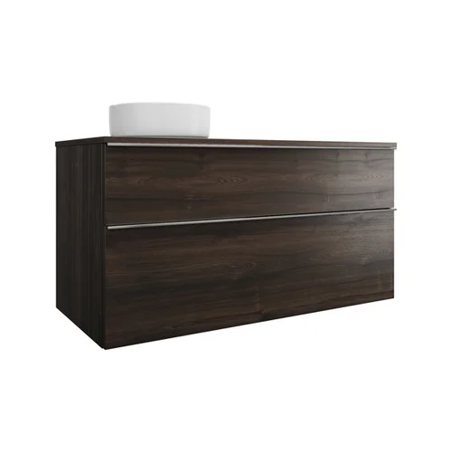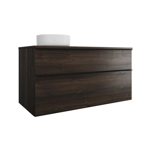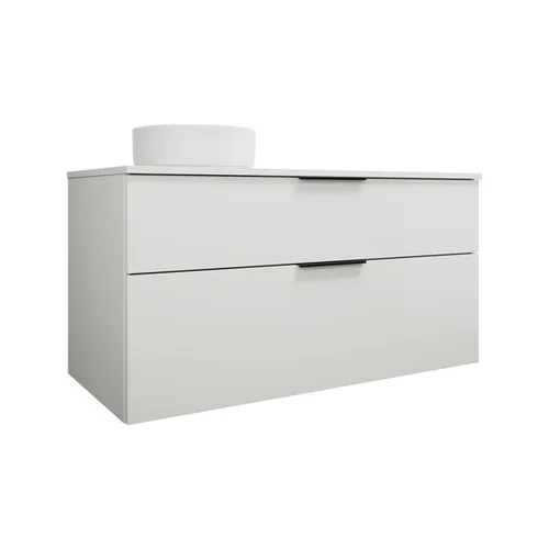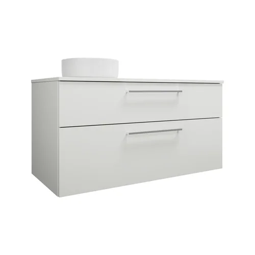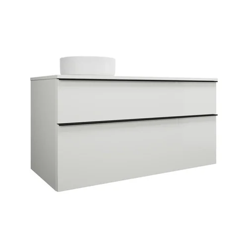 burgbad Eqio Keramik-Aufsatzwaschtisch rund, links, inklusive Waschtischunterschrank mit 2 Schubladen, Breite 1200mm