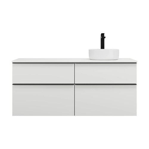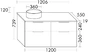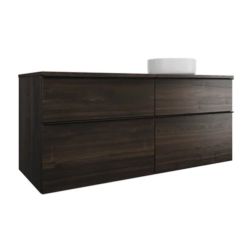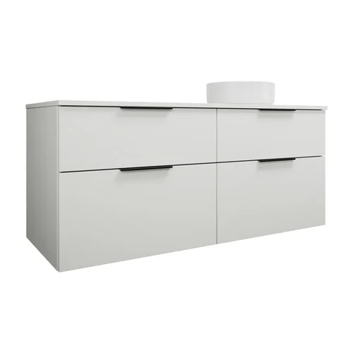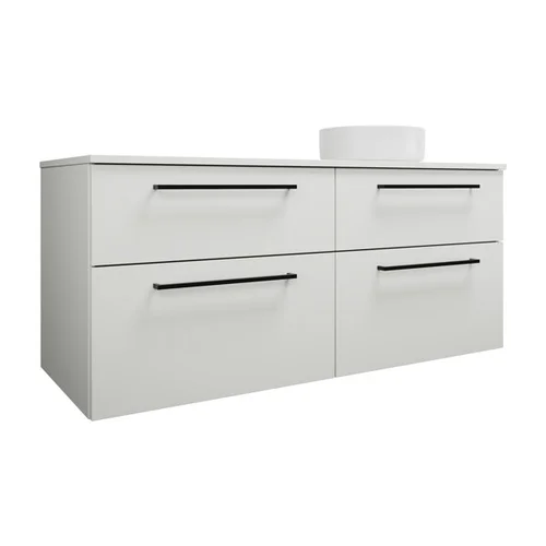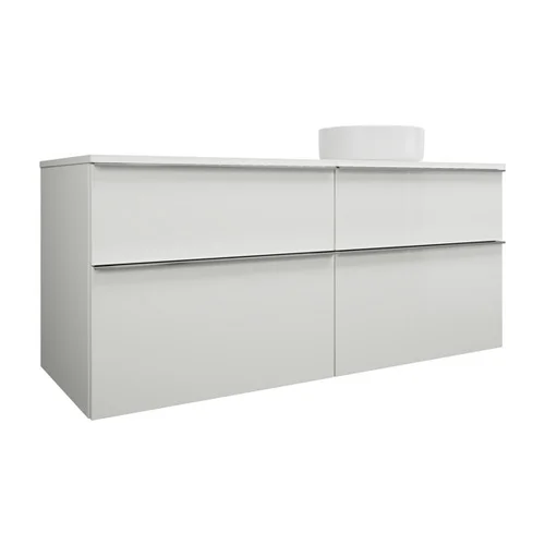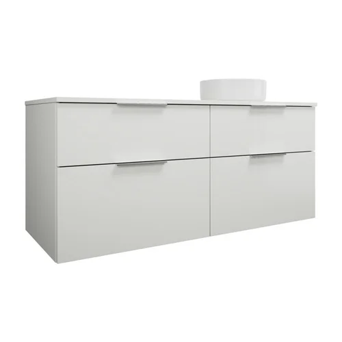 burgbad Eqio Keramik-Aufsatzwaschtisch rund, rechts, inklusive Waschtischunterschrank, Breite 1400mm