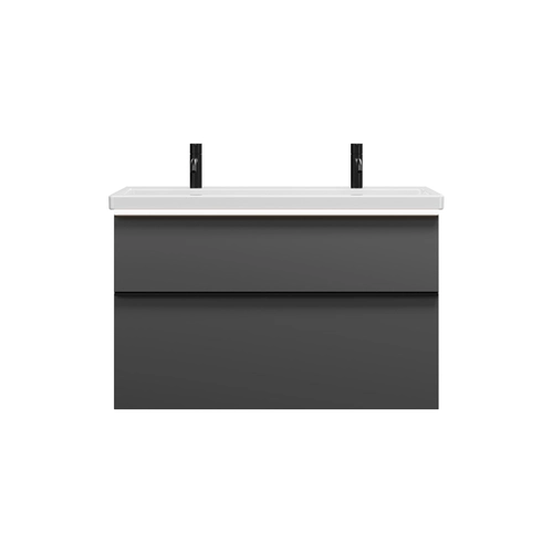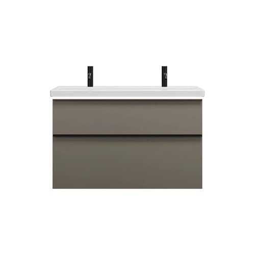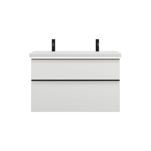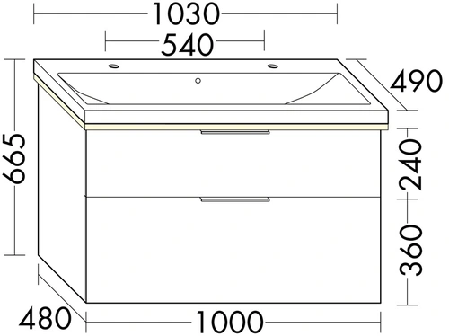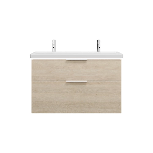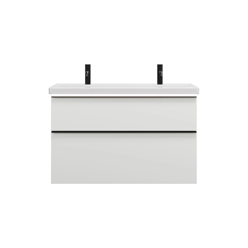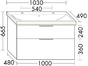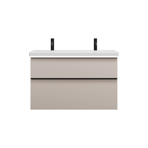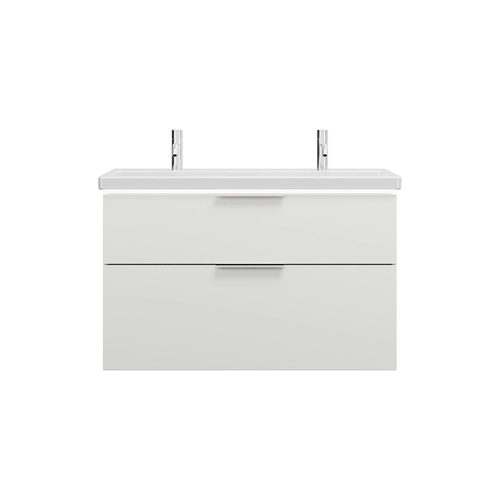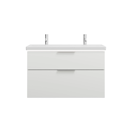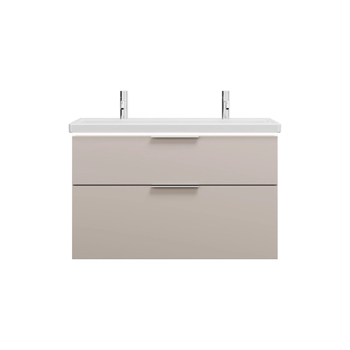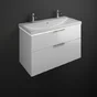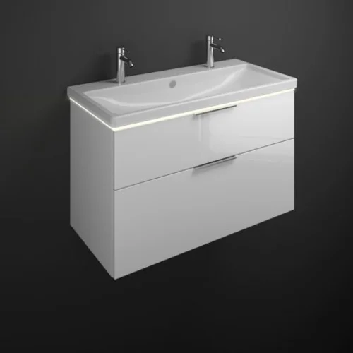 burgbad Eqio Keramik-Waschtisch mit 2 Armaturbohrungen, inklusive Waschtischunterschrank mit LED-Beleuchtung, Breite 1030mm