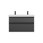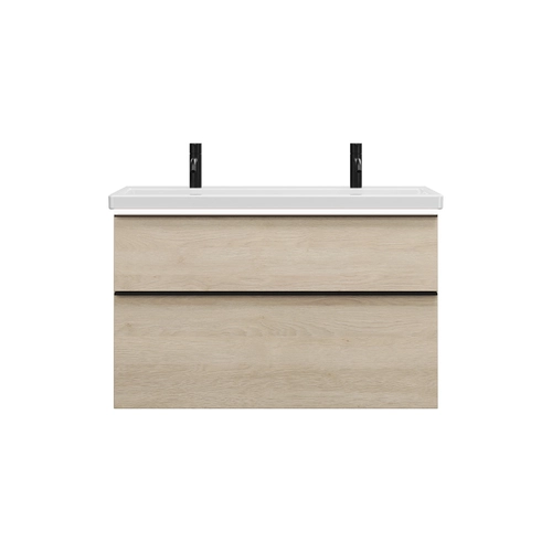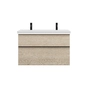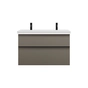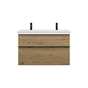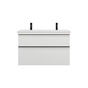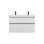 - 1 x Keramik Waschtisch mit 2 Armaturbohrungen, inklusive Waschtischunterschrank mit LED-Beleuchtung