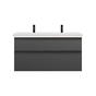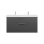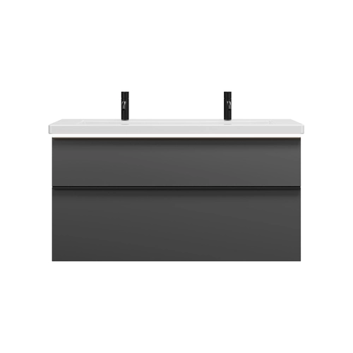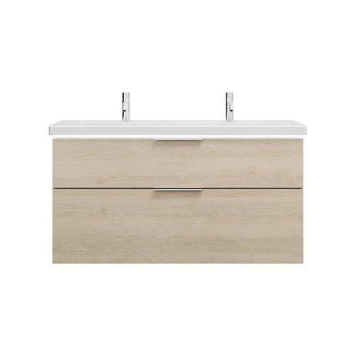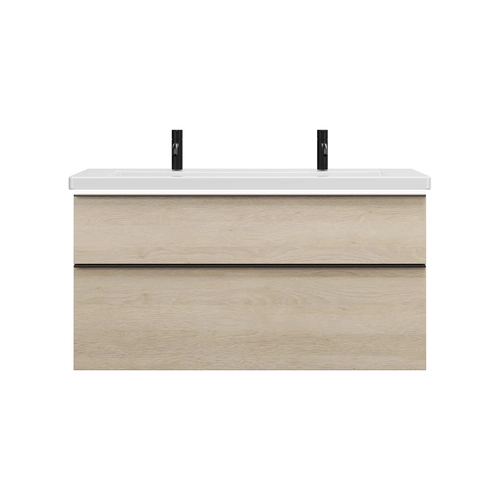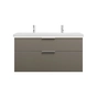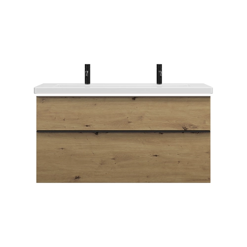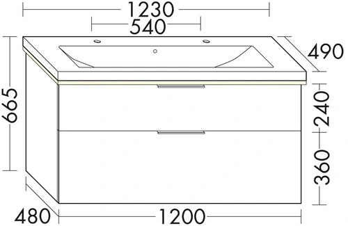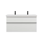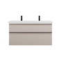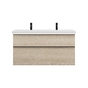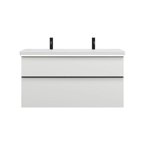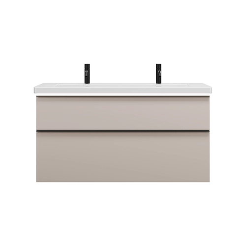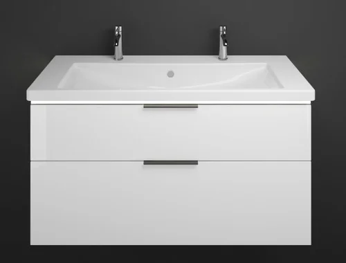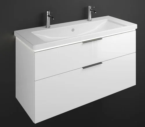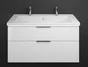 burgbad Eqio Keramik-Waschtisch mit 2 Armaturbohrungen, inklusive Waschtischunterschrank mit LED-Beleuchtung, Breite 1230mm