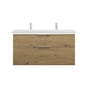 - 1 x Keramik Waschtisch mit 2 Armaturbohrungen, inklusive Waschtischunterschrank mit LED-Beleuchtung