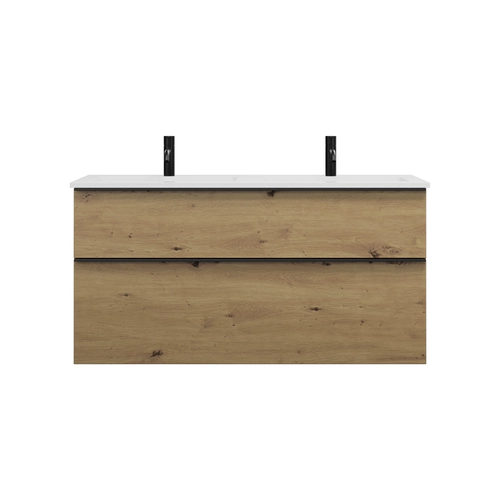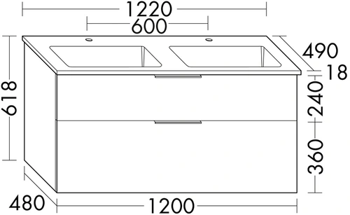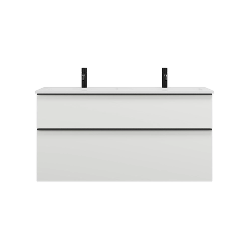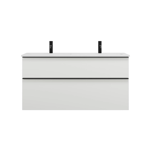 burgbad Eqio Mineralguss-Doppelwaschtisch inklusive Waschtischunterschrank mit 2 Schubladen, Breite 1220mm