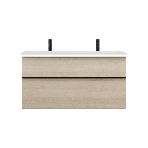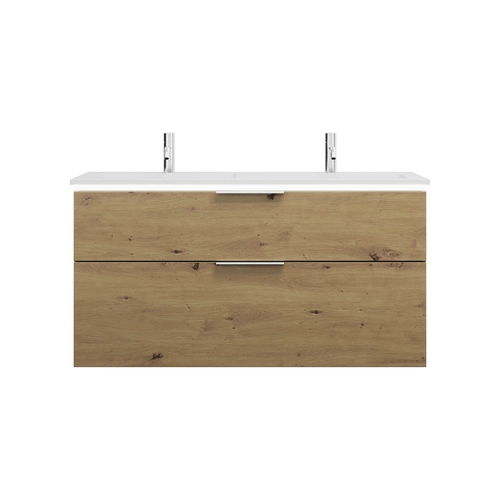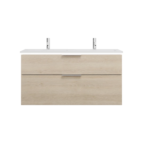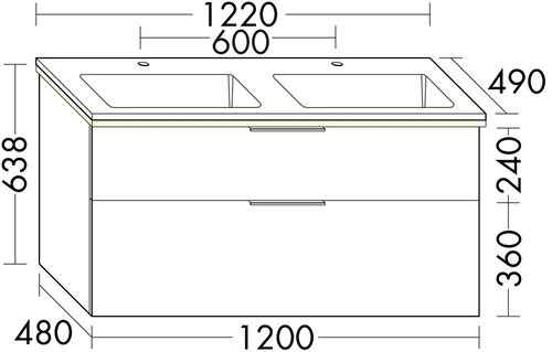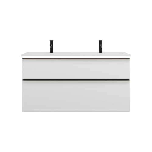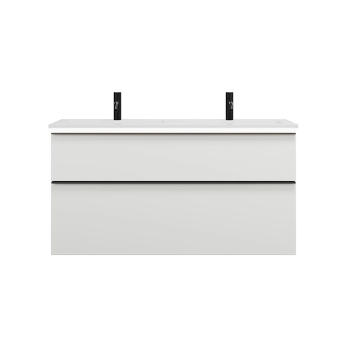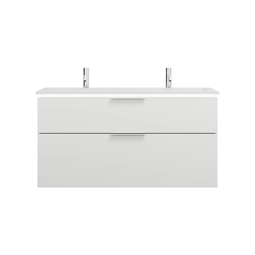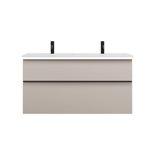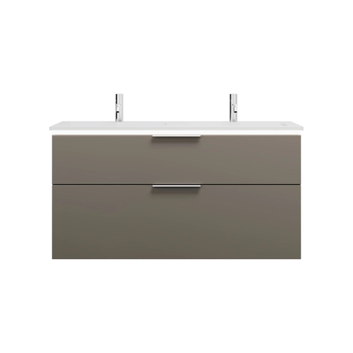 burgbad Eqio Mineralguss-Doppelwaschtisch inklusive Waschtischunterschrank mit LED-Beleuchtung, mit 2 Schubladen, Breite 1220mm