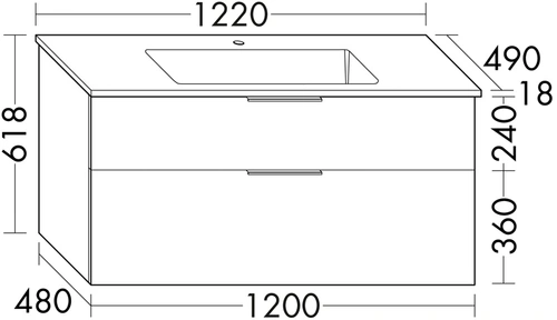 burgbad Eqio Mineralguss-Waschtisch inklusive Waschtischunterschrank, 1220x490x618mm