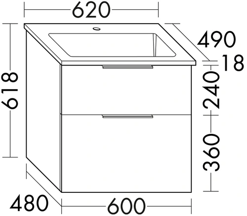 burgbad Eqio Mineralguss-Waschtisch inklusive Waschtischunterschrank, 620x490x618mm