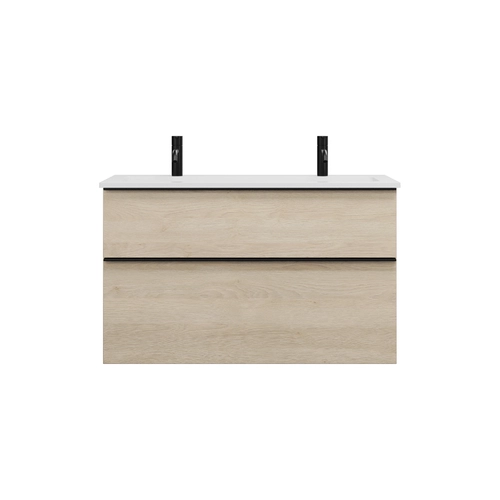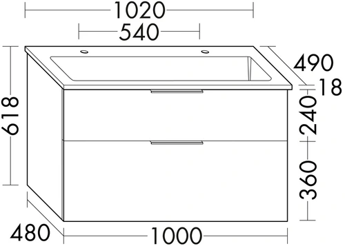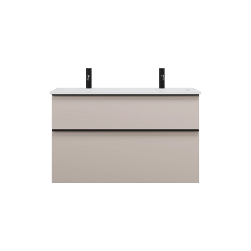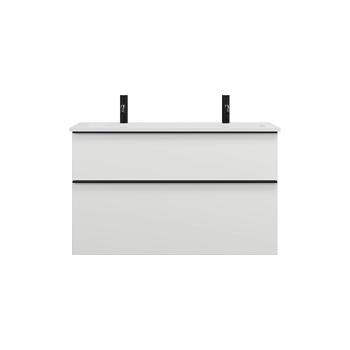burgbad Eqio Mineralguss-Waschtisch mit 2 Armaturbohrungen, inklusive Waschtischunterschrank, 1020x490x618mm