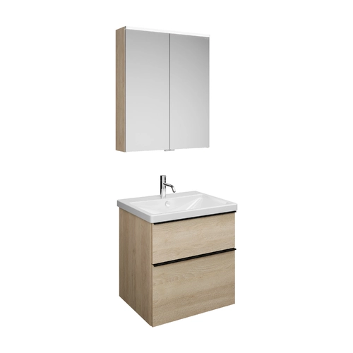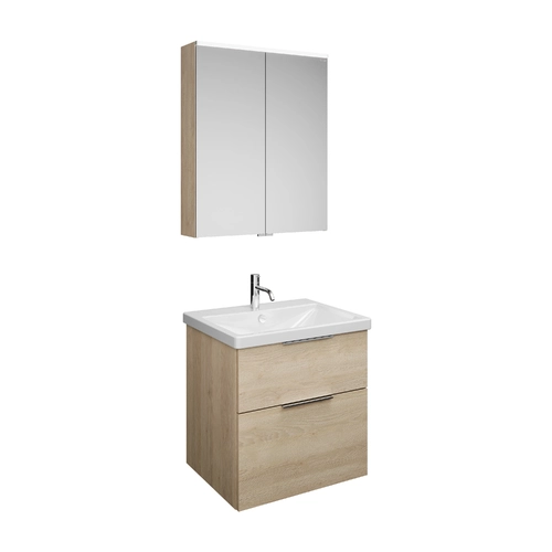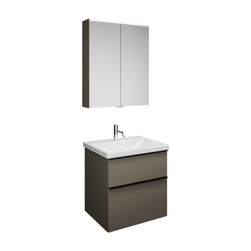 burgbad Eqio Set, bestehend aus Spiegelschrank, Keramik-Waschtisch und Waschtischunterschrank, Breite 650mm