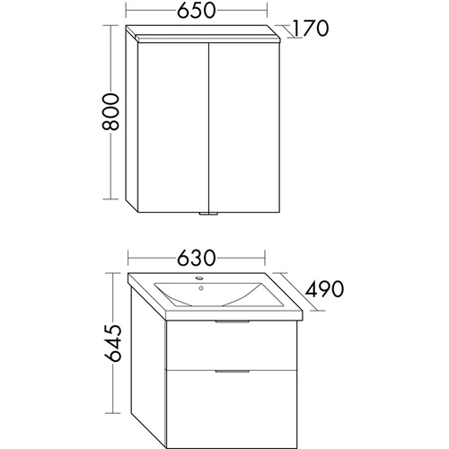 • bestehend aus Spiegelschrank, Keramik Waschtisch, Waschtischunterschrank ( SPGS065 + SEYQ063 )