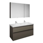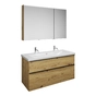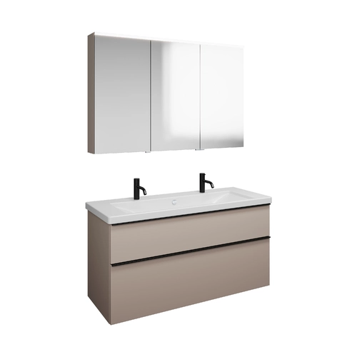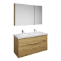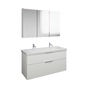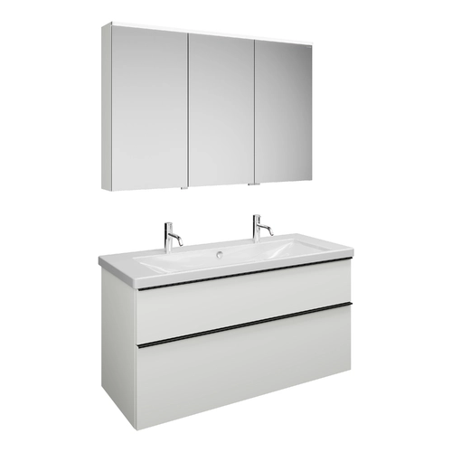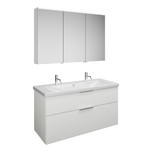 burgbad Eqio Set, bestehend aus Spiegelschrank links, Keramik-Waschtisch mit 2 Armaturbohrungen und Waschtischunterschrank, Breite 1230mm