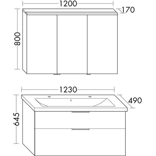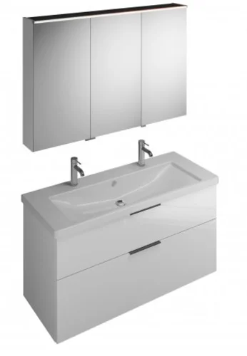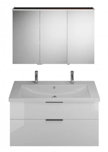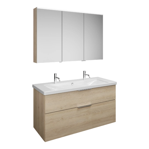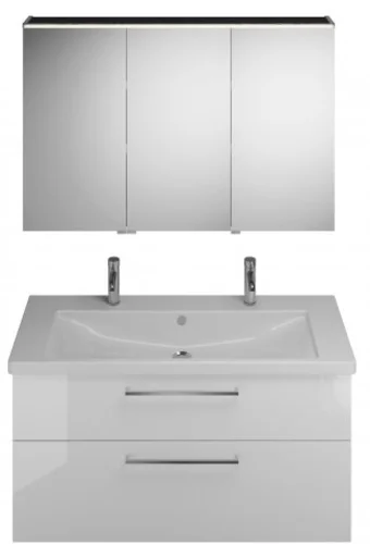 - bestehend aus Spiegelschrank, Keramik-Waschtisch mit 2 Armaturbohrungen, Waschtischunterschrank ( SPGS120R + SEYR123 )