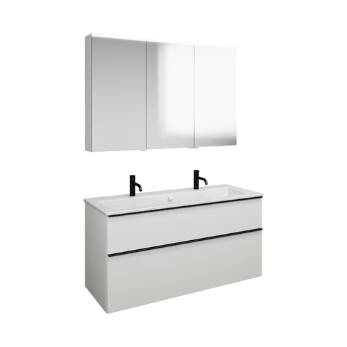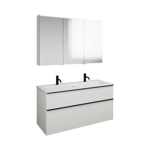 burgbad Eqio Set, bestehend aus Spiegelschrank links, Keramik-Waschtisch Slim mit 2 Armaturbohrungen und Waschtischunterschrank, Breite 1220mm