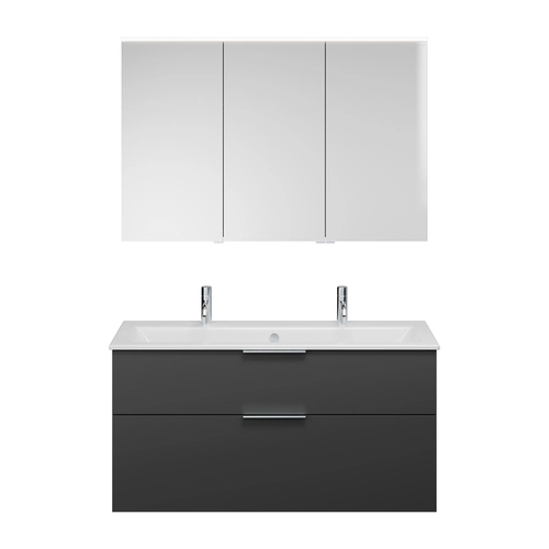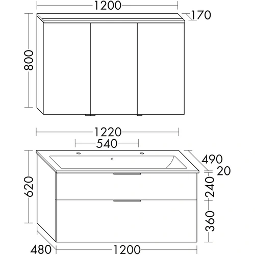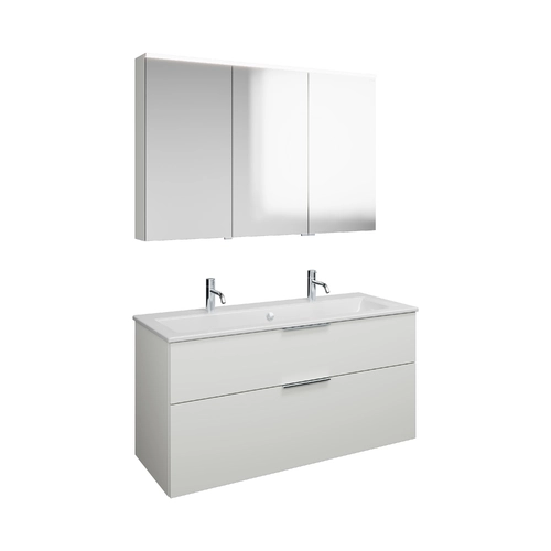- bestehend aus Spiegelschrank, Keramik Waschtisch Slim mit 2 Armaturbohrungen, Waschtischunterschrank ( SPGS120R + SHBV122 )
