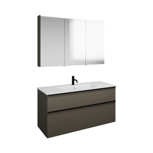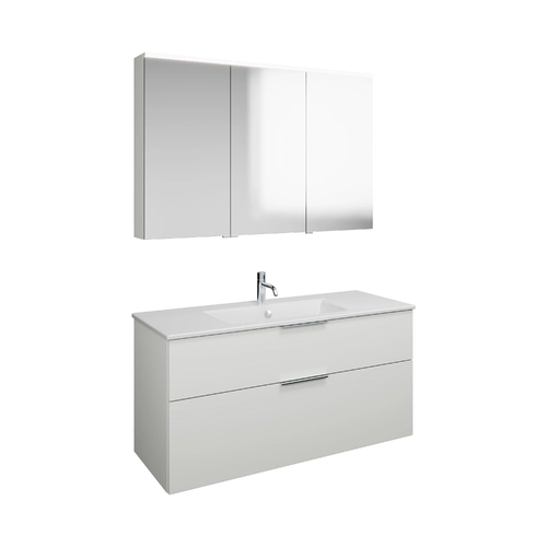 burgbad Eqio Set, bestehend aus Spiegelschrank rechts, Keramik-Waschtisch Slim und Waschtischunterschrank, Breite 1220mm