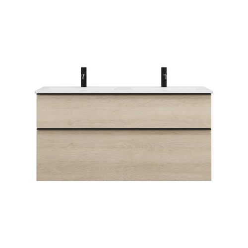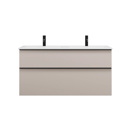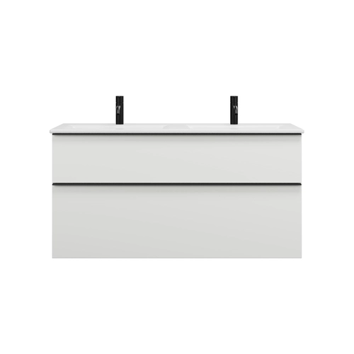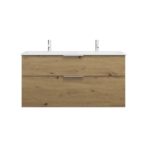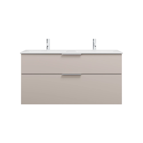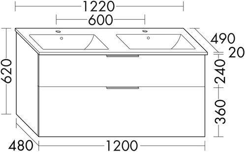 burgbad Eqio Slim Keramik-Doppelwaschtisch inklusive Waschtischunterschrank mit 2 Schubladen, 1220x490x620mm