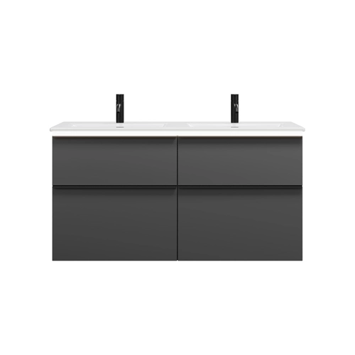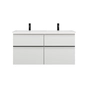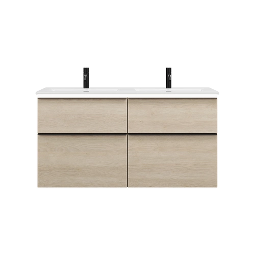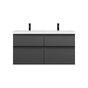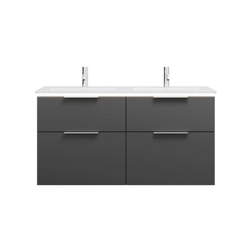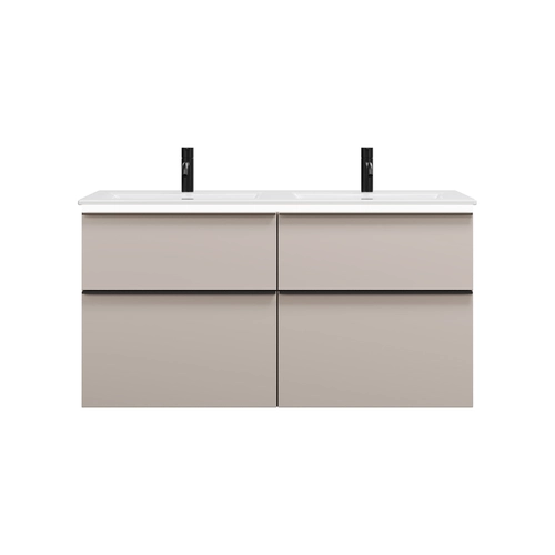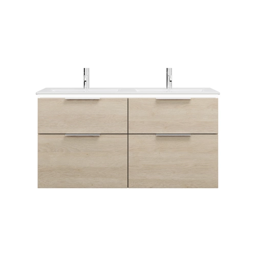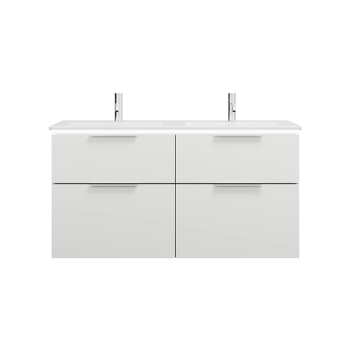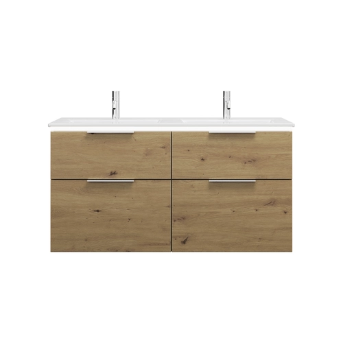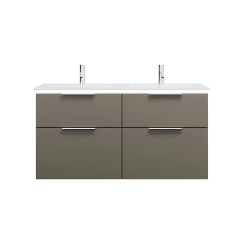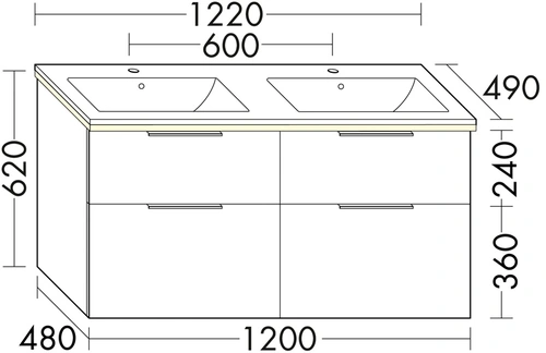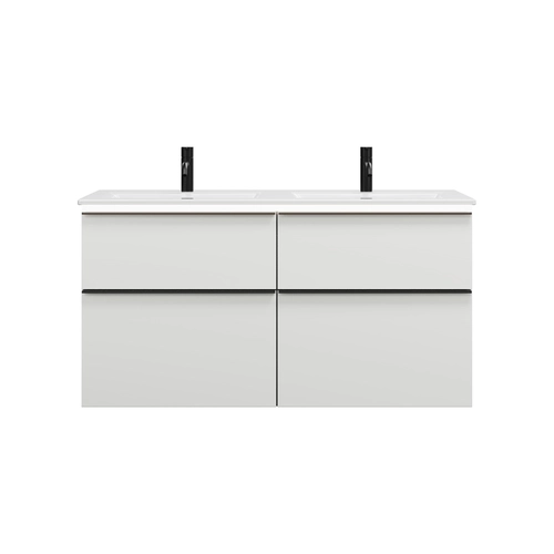 burgbad Eqio Slim Keramik-Doppelwaschtisch inklusive Waschtischunterschrank mit LED-Beleuchtung, mit 4 Schubladen, 1220x490x640mm