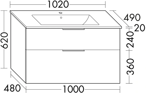 burgbad Eqio Slim Keramik-Waschtisch inklusive Waschtischunterschrank, 1020x490x620mm
