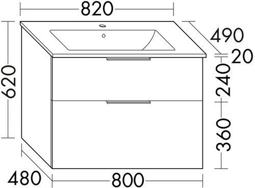 burgbad Eqio Slim Keramik-Waschtisch inklusive Waschtischunterschrank, 820x490x620mm