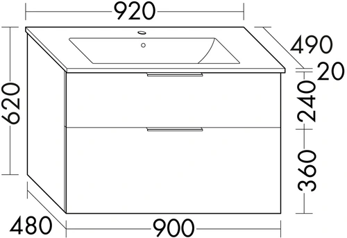 burgbad Eqio Slim Keramik-Waschtisch inklusive Waschtischunterschrank, 920x490x620mm