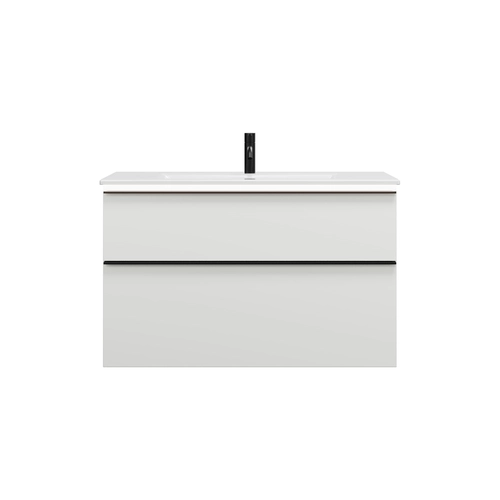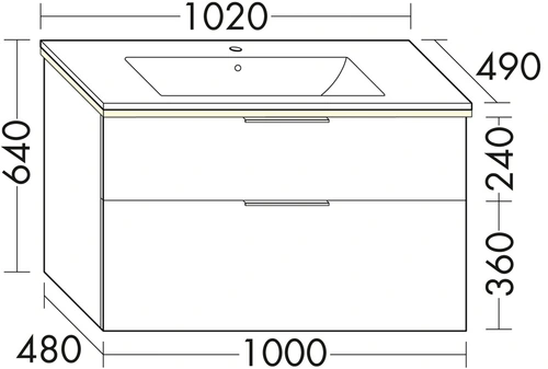 burgbad Eqio Slim Keramik-Waschtisch inklusive Waschtischunterschrank mit LED-Beleuchtung, 1020x490x640mm