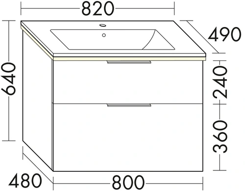 burgbad Eqio Slim Keramik-Waschtisch inklusive Waschtischunterschrank mit LED-Beleuchtung, 820x490x640mm
