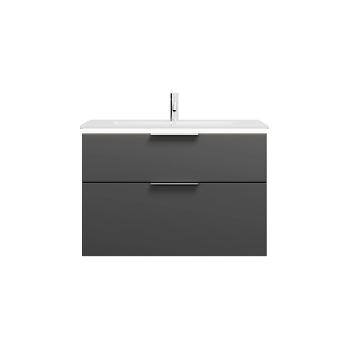 - Acrylfront Hochglanz mit Laserkante / Korpusaussenseiten Melamin Glänzend: Weiß Hochglanz, Grau Hochglanz (Böden/Rückwand: Anthrazitgrau)