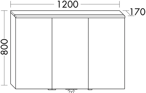 burgbad Eqio Spiegelschrank mit LED-Aufsatzleuchte und Waschtischbeleuchtung, 3-türig, mittlerer Türanschlag links, 1200x800x170mm