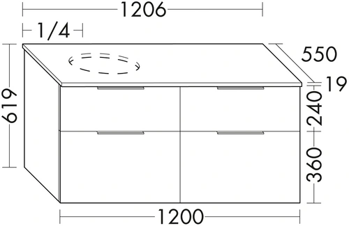 burgbad Eqio Waschtischunterschrank inklusive Konsolenplatte, Ausschnitt links, 4 Schubladen, Breite 1200mm