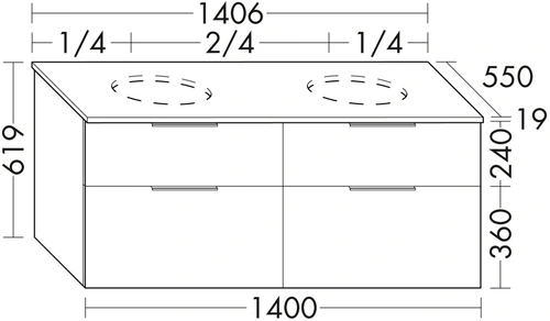 burgbad Eqio Waschtischunterschrank inklusive Konsolenplatte mit 4 Schubladen, für 2 Aufsatzwaschtische, Breite 1400mm