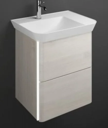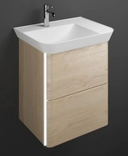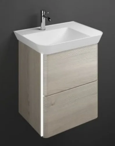 burgbad Iveo Mineralguss-Waschtisch inklusive Waschtischunterschrank, inklusive LED-Waschtischunterschrankbeleuchtung, Version links, Breite: 650mm