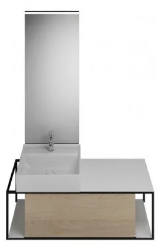 burgbad Junit Set Keramik-Waschtisch inklusive Waschtischunterschrank, Version rechts, inklusive Leuchtspiegel SFLF120, Breite: 1200mm