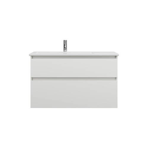 burgbad Lin20 Keramik-Waschtisch Weiß Glänzend inklusive Waschtischunterschrank, 2 Auszüge, linksbündig, 1030x495x622mm