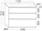 - Maße Unterschrank B/T/H = 1200 mm x 485 mm x 890 mm