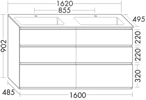 - Waschtischmaß B/T = 1620 mm x 495 mm