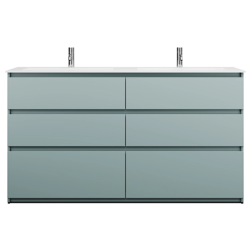 burgbad Lin20 Mineralguss-Doppelwaschtisch Weiß Matt inklusive Waschtischunterschrank, 6 Auszüge parallel, 1620x495x902mm