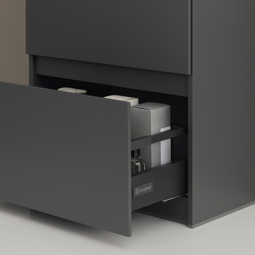 - Mehrfachlackierung, Matt - Front umlaufend/Korpusaussenseite lackiert: Weiß Matt, Dunkelgrau Matt (Böden und Rückwand: Anthrazitgrau)