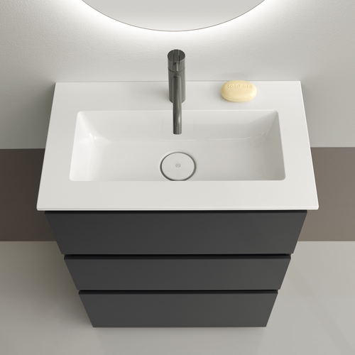 burgbad Lin20 Mineralguss-Waschtisch Weiß Glänzend inklusive Waschtischunterschrank, 3 Auszüge, 620x365x902mm
