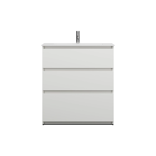 burgbad Lin20 Mineralguss-Waschtisch Weiß Glänzend inklusive Waschtischunterschrank, 3 Auszüge, 820x365x902mm
